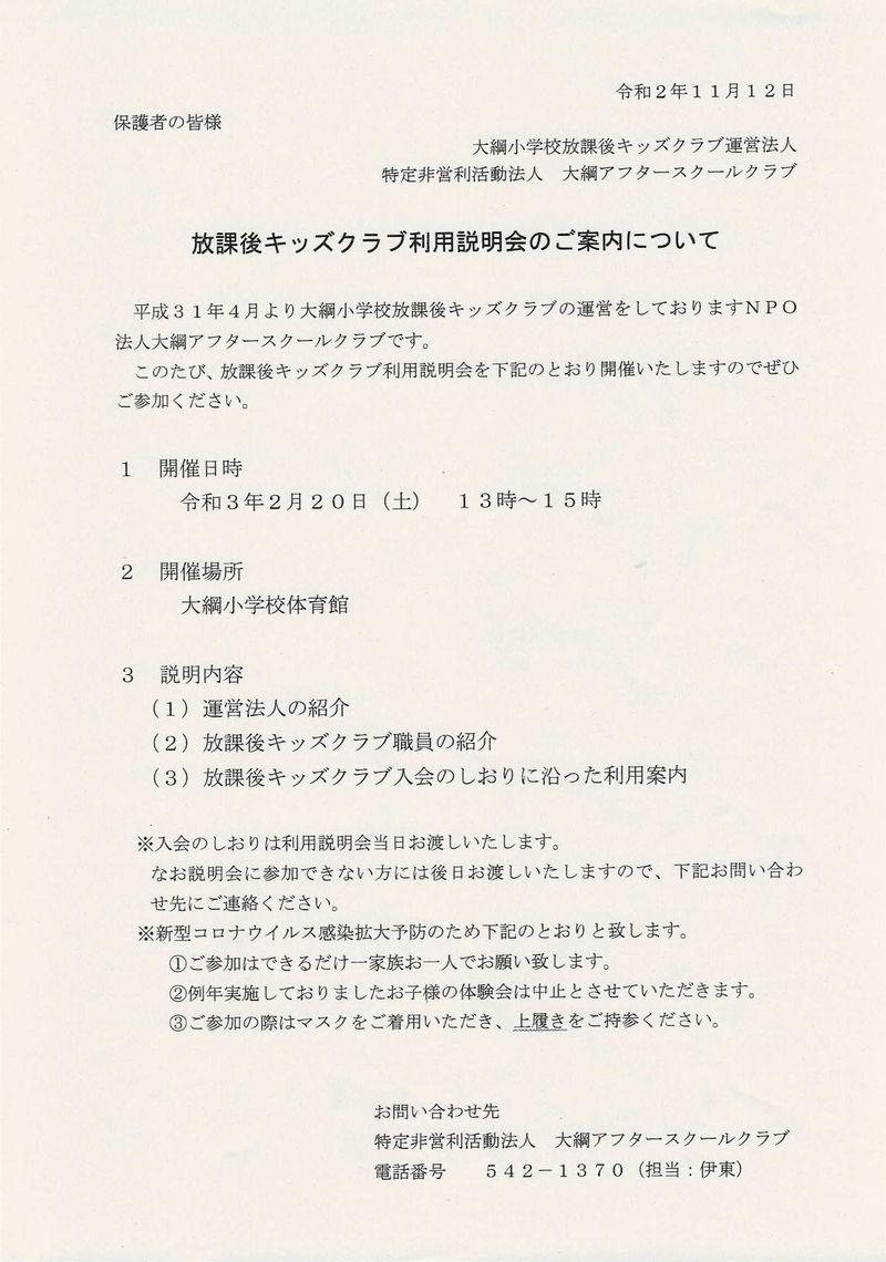 【お知らせ】 令和2年11月12日