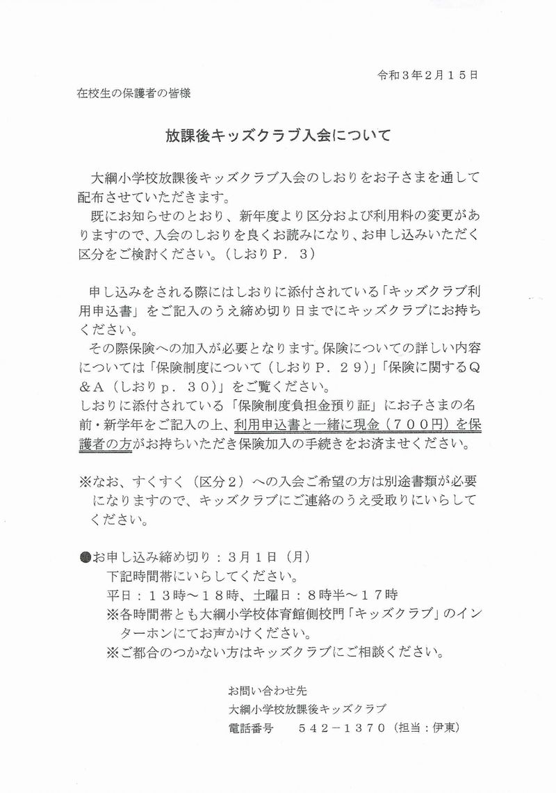 1.新1年生の保護者の皆様へ